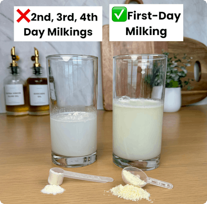 Colostrum collected during the very first day after birth contains the highest levels of immune factors and growth components. Many brands mix second- or third-day milkings, diluting potency.